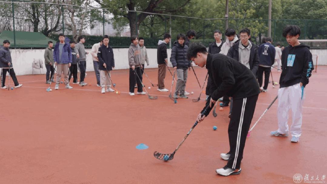 在复旦,有一门体育课零基础就能上手,场上全员奔跑,挥杆、传球、射门一气呵成。它不是冰球,却有着冰球的激情与速度。这就是旱地冰球。