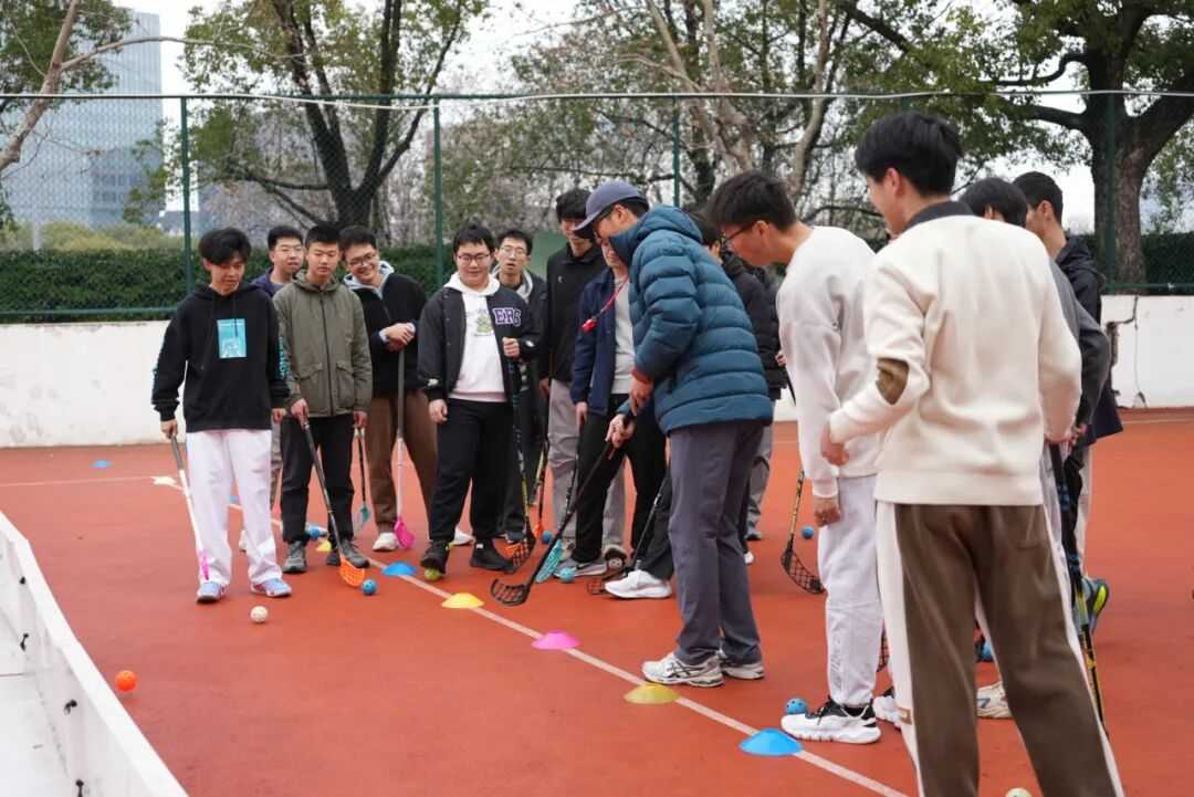 “我之前没学过旱地冰球,是零基础选课。”公共卫生学院2025级本科生刘昊儒说,“老师讲解认真,示范清楚,还很耐心帮我们纠正发力方式,学起来并不难。”