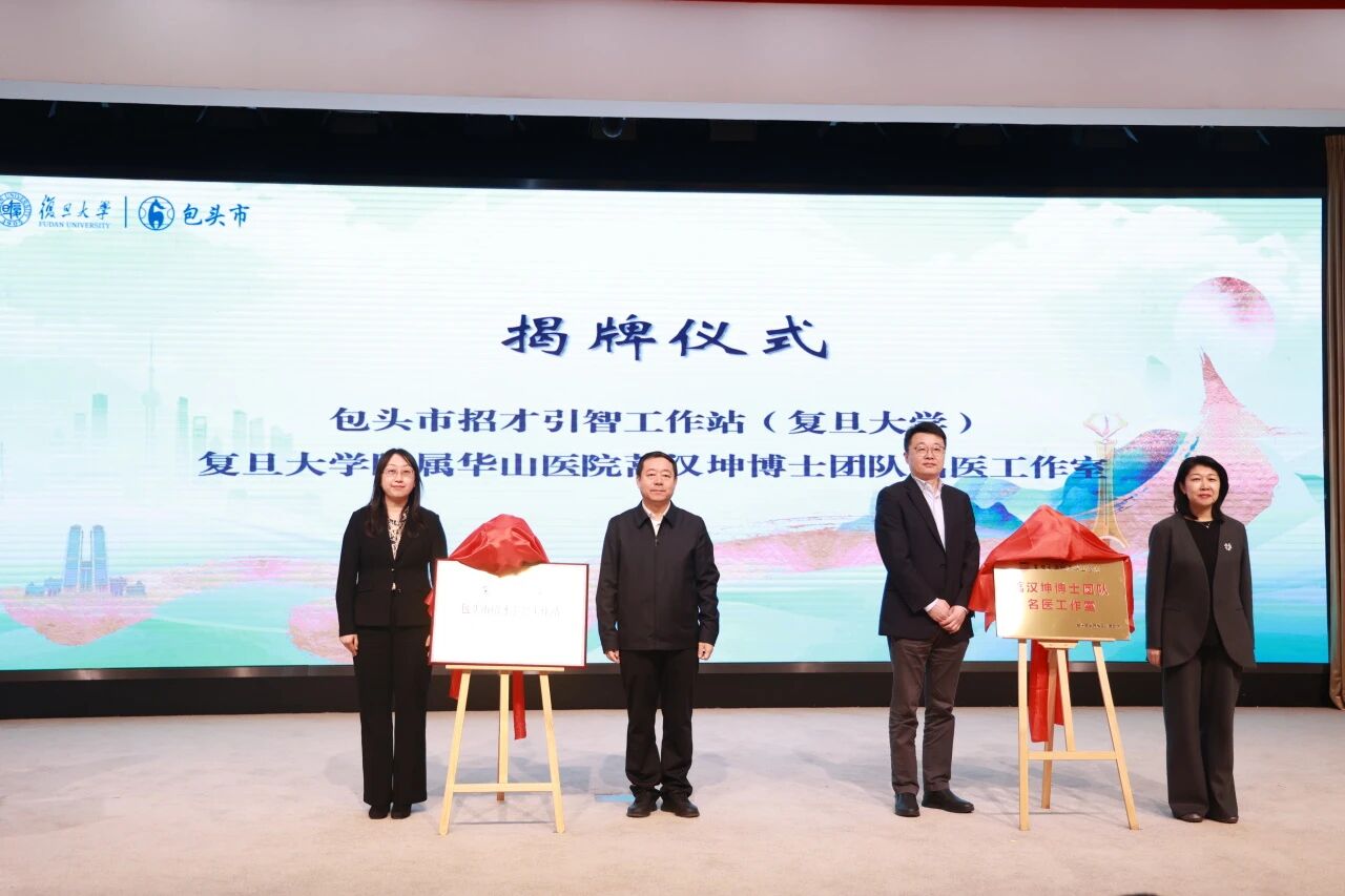 现场,“包头市招才引智工作站(复旦大学)”正式授牌,“复旦大学附属华山医院蒿汉坤博士团队名医工作站”揭牌,为双方在人才引育、医疗技术等领域深化合作搭建了重要平台。